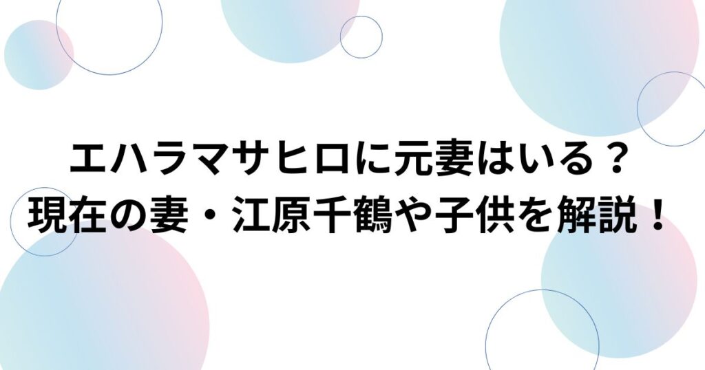 お笑い芸人として多方面で活躍しているエハラマサヒロさんには、元妻が存在するのではないか、再婚しているのではないかといった噂がたびたび取り上げられます。 エハラマサヒロさんに元妻はおらず、再婚の事実も確認されていません。 2009年に江原千鶴さ... -