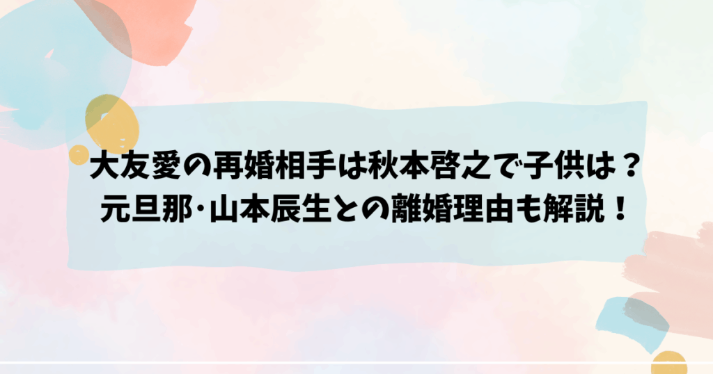 大友愛の再婚相手は秋本啓之で子供は?元旦那・山本辰生との離婚理由も解説!