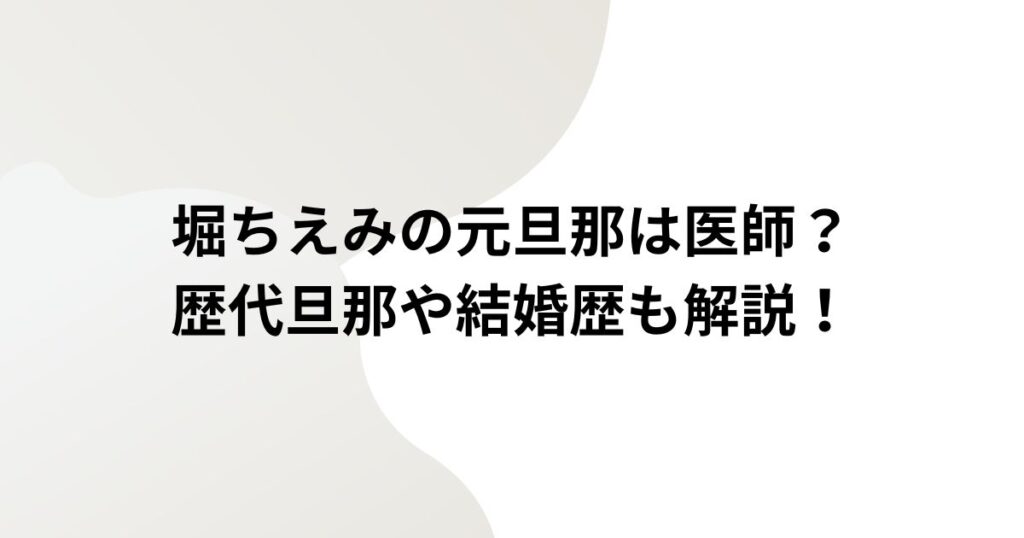 堀ちえみの元旦那は医師?歴代旦那や結婚歴も解説!