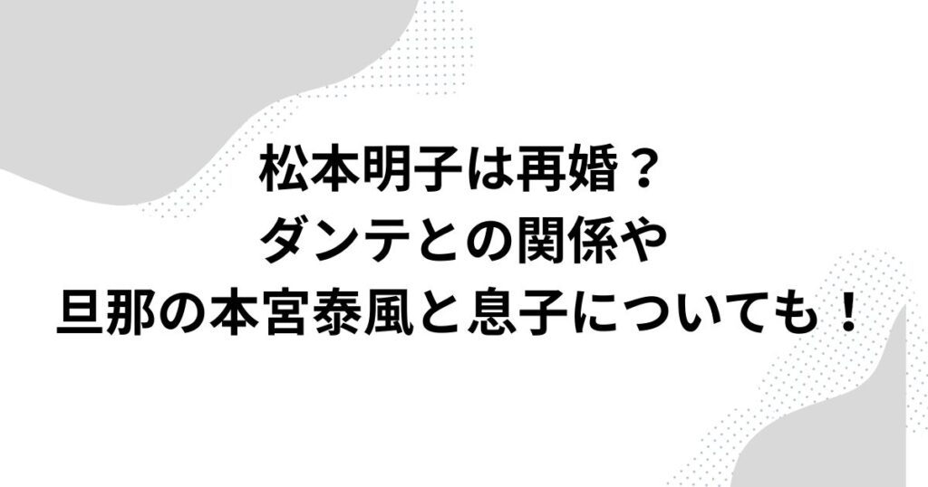 松本明子は再婚?ダンテとの関係や旦那の本宮泰風と息子についても!