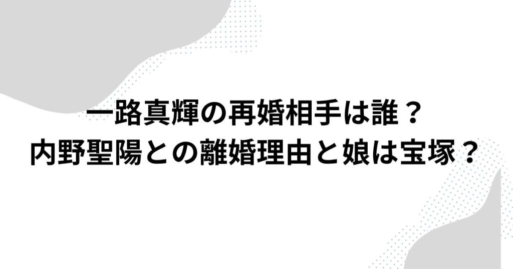 一路真輝の再婚相手は誰?内野聖陽との離婚理由と娘は宝塚?