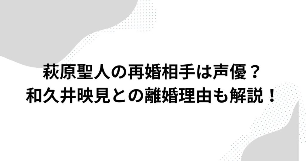 萩原聖人の再婚相手は声優?和久井映見との離婚理由も解説!