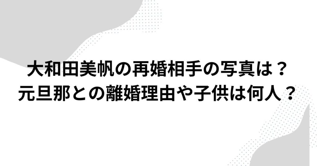 女優として舞台やテレビで活躍してきた大和田美帆さんは、私生活に関する話題でも多くの関心を集めています。 特に近年は「大和田美帆さんの再婚」や「大和田美帆さんの再婚相手」といったテーマがインターネット検索で注目されています。 しかし、大和田... -