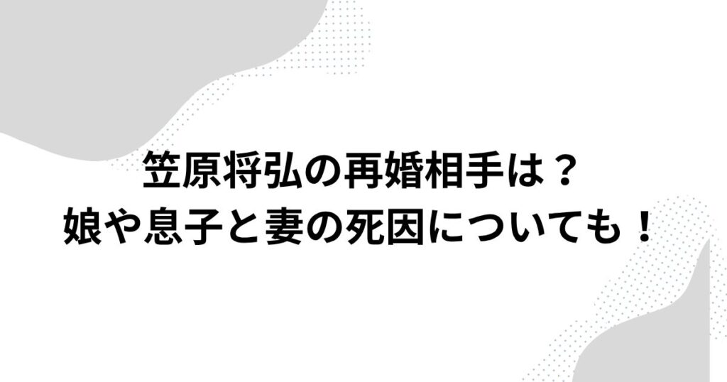 笠原将弘の再婚相手は?娘や息子と妻の死因についても!
