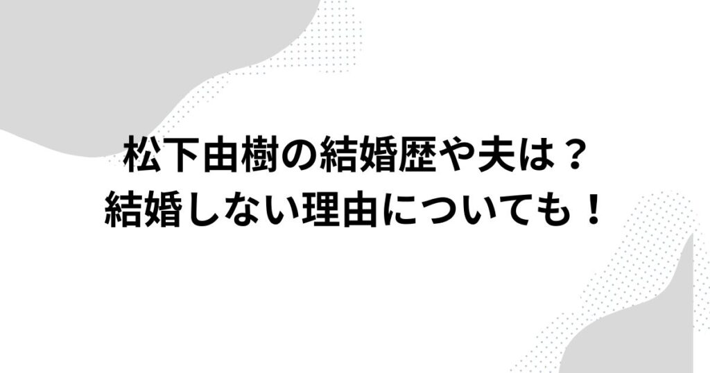 松下由樹の結婚歴や夫は?結婚しない理由についても!