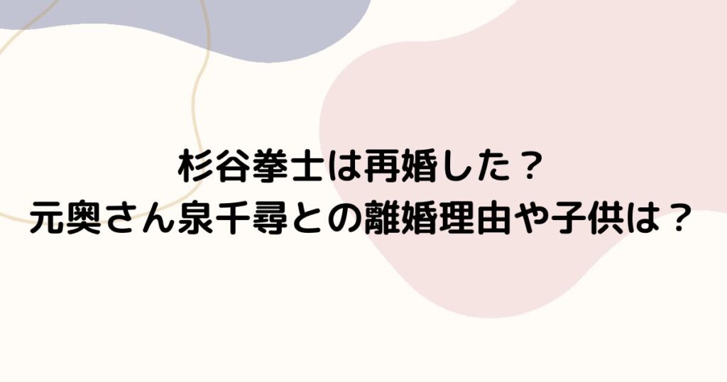 杉谷拳士は再婚した?元奥さん泉千尋との離婚理由や子供は?