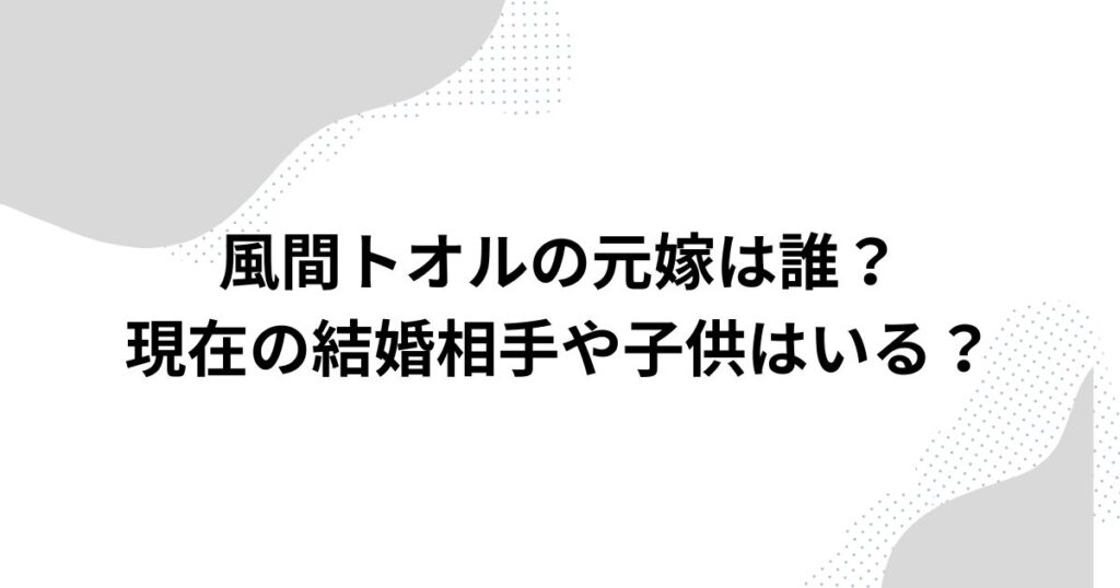 風間トオルの元嫁は誰?現在の結婚相手や子供はいる?