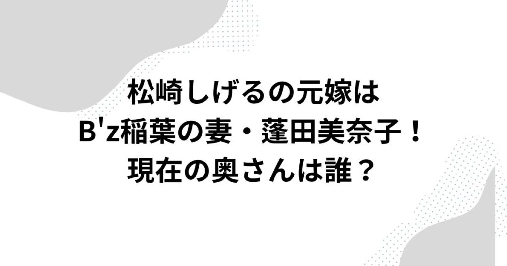 松崎しげるの元嫁はB’z稲葉の妻・蓬田美奈子!現在の奥さんは誰?
