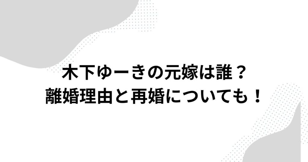 木下ゆーきの元嫁は誰?離婚理由と再婚についても!