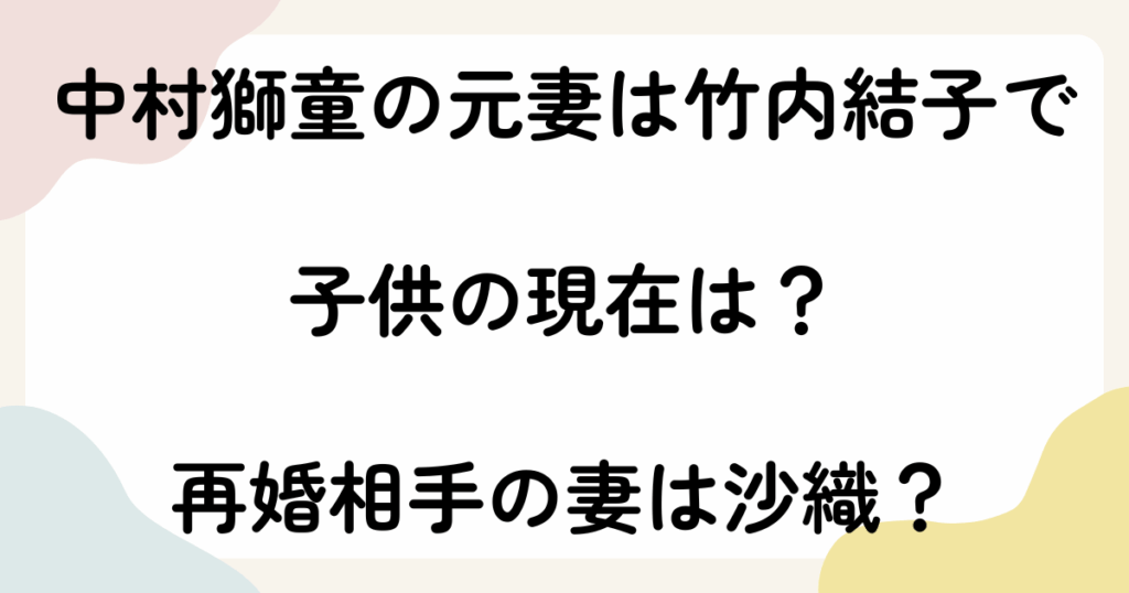 歌舞伎俳優として第一線で活躍する中村獅童さんは、私生活でも大きな注目を集めてきました。 中村獅童さんの元妻として知られる竹内結子さんとの離婚や再婚、そして子供をめぐる歩みは、多くの人の関心を集めています。 中村獅童さんと竹内結子さんの間に... -
