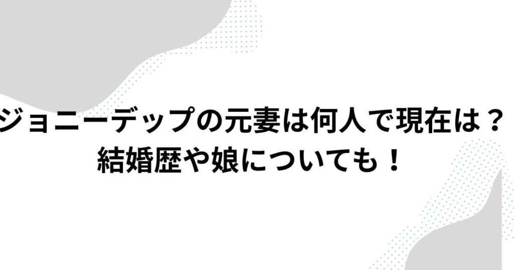 ハリウッドを代表する俳優ジョニーデップさんは、華やかなキャリアの一方で私生活も常に注目を集めてきました。 特にジョニーデップさんの元妻や結婚歴、長年のパートナー関係、そして世界的に報じられた裁判は、多くの関心を集めています。 本記事では、... -