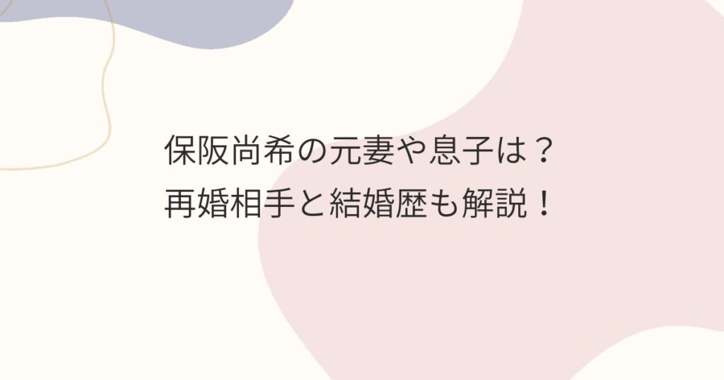 保阪尚希の元妻や息子は?再婚相手と結婚歴も解説!