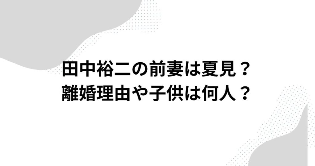 田中裕二の前妻は夏見?離婚理由や子供は何人?