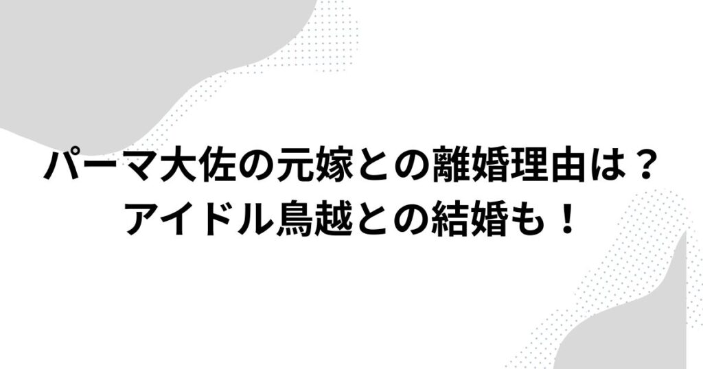パーマ大佐の元嫁との離婚理由は?アイドル鳥越との結婚も!
