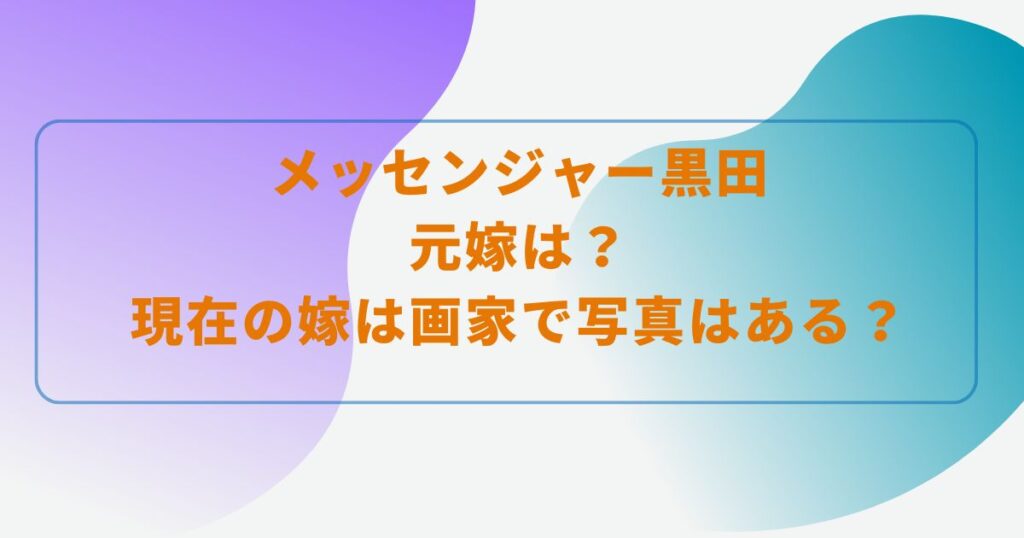 メッセンジャー黒田の元嫁は?現在の嫁は画家で写真はある?
