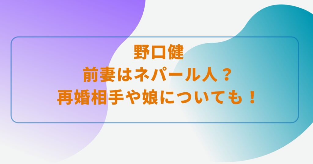 野口健の前妻はネパール人?再婚相手や娘についても!