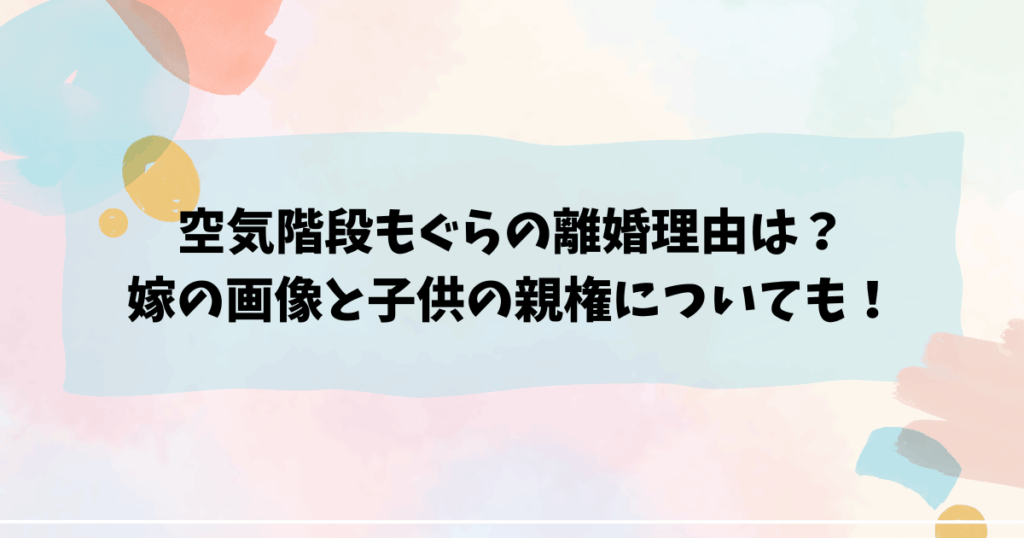 空気階段もぐらの離婚理由は?嫁の画像と子供の親権についても!
