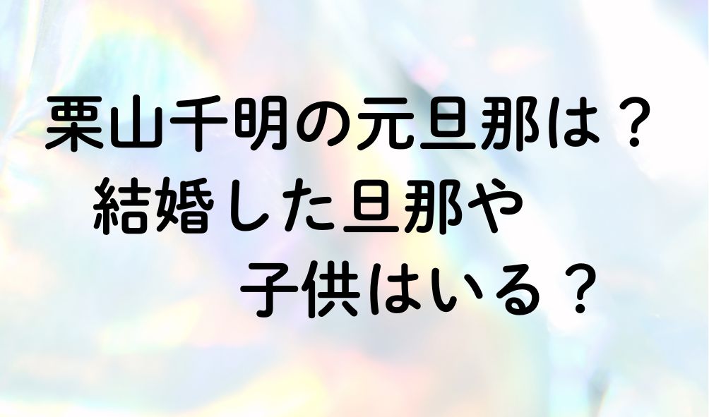 栗山千明さんは、女優として長年にわたり第一線で活躍し続ける存在です。 クールでミステリアスな印象と、確かな演技力で多くのファンを魅了しています。 そんな栗山千明さんの名前を検索すると、「元旦那」という言葉が一緒に表示されることがあります。 ... -