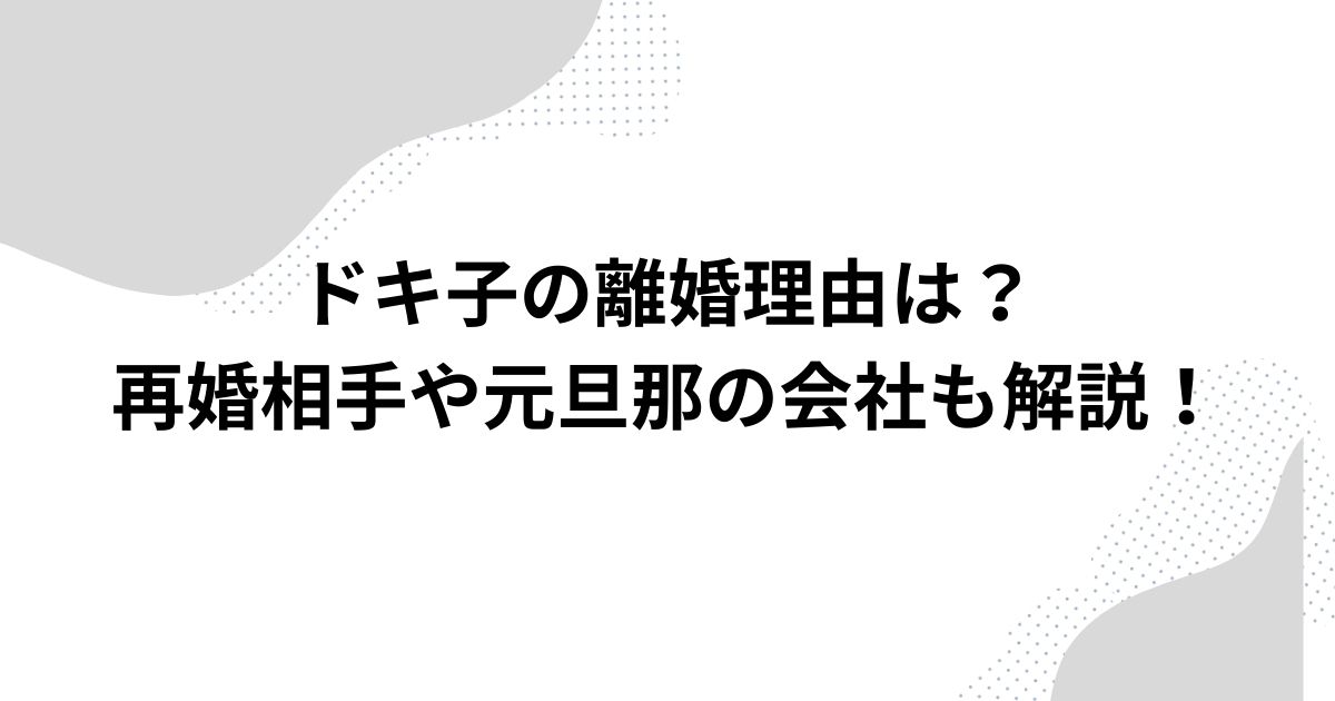 本記事では、ドキ子さんの離婚に関して公表されている事実を整理し、元夫がどのような人物なのか、仕事や生活スタイルについて分かる範囲を丁寧にまとめています。