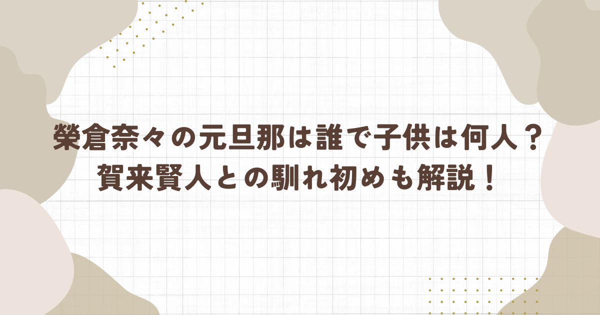 最も多く検索されている「元旦那」というキーワードについてですが、榮倉奈々さんに元夫は存在せず、結婚歴は現在の夫である賀来賢人さんとの一度のみです。