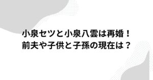 小泉セツと小泉八雲は再婚!前夫や子供と子孫の現在は? 小泉セツさんの再婚は、日本文学史において重要な転機となった出来事です。 小泉セツさんは没落士族の家に生まれ、養女として育ち、最初の結婚と離婚を経験したのち、小...
