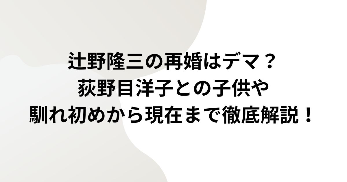 再婚の噂については、結婚15周年で人前式を挙げた際の誤解や根拠のない憶測が広まった結果であり、辻野隆三さんに再婚歴はなく、荻野目洋子さんとの結婚が初婚です。